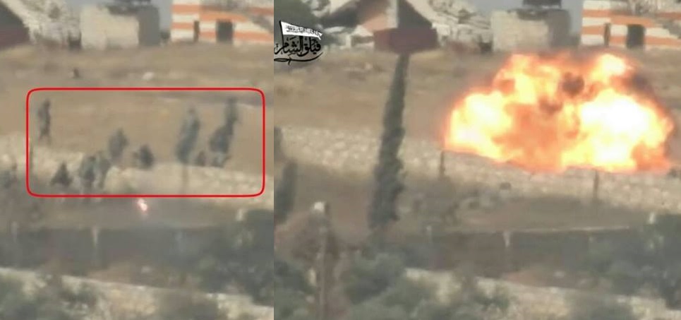حلب : لحظة نسف الثوار تجمعاً للميليشيات النظامية بصاروخ موجه في الريف الجنوبي ( فيديو )
