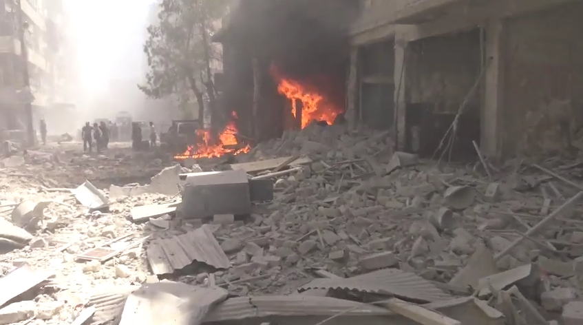 حلب : طائرات بشار الأسد ترتكب مجزرة جديدة عبر قصف مشفى البيان في حي الشعار ( فيديو )