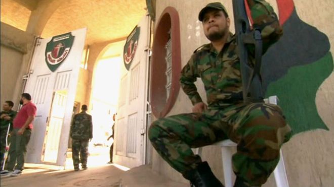 وتقع أغلب السجون الليبية تحت سيطرة قوة مشتركة من الميليشيات المسلحة في البلاد وجهاز الشرطة القضائية. (BBC)