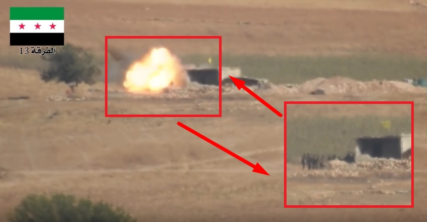 حلب : لحظة نسف الجيش الحر تجمعاً لميليشيات حزب الله بصاروخ ” تاو ” في خان طومان ( فيديو )