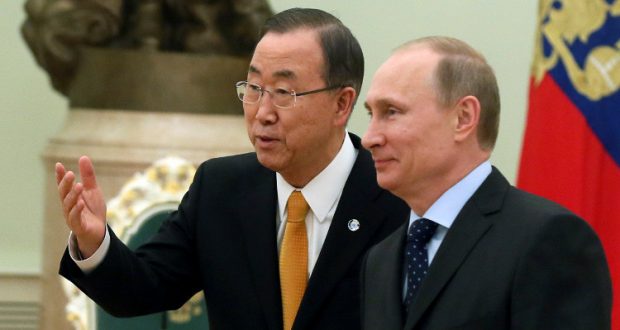 وخلال افتتاح المنتدى الاقتصادي الدولي في سان بطرسبرغ، أشار بان كي مون إلى أن لروسيا “دوراً حاسماً” تقوم به “لوضع حد للنزاع في أوكرانيا وسوريا، وحماية حقوق الإنسان والسيطرة على انتشار أسلحة الدمار الشامل”.