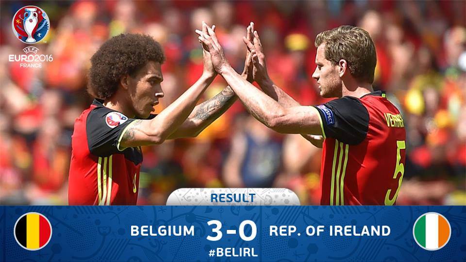 وظهرت أيرلندا بشكل جيد لفترة قصيرة قبل أن يضيف أليكس فيتسل الهدف الثاني بضربة رأس قوية في الدقيقة 61 ثم أكمل لوكاكو الثلاثية بعد هجمة مرتدة سريعة أخرى عقب تسع دقائق.
