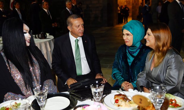 واظهرت الصور الرئيس التركي وزوجته جالسين الى المائدة نفسها مع بولنت ارسوي البالغة من العمر 64 عاما، والتي كلفها تحويل الجنس ملاحقة واعتداء جسديا في بلدها قبل عقود.