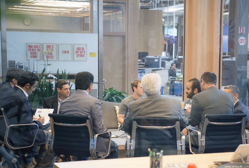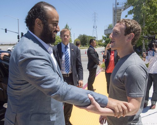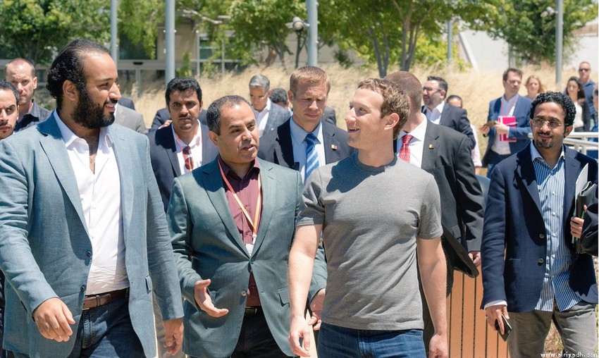 وخلال زيارته إلى مقر شركة فيسبوك التقى الأمير محمد بن سلمان بالشريك المؤسس ورئيس الشركة مارك زوكربيرغ.