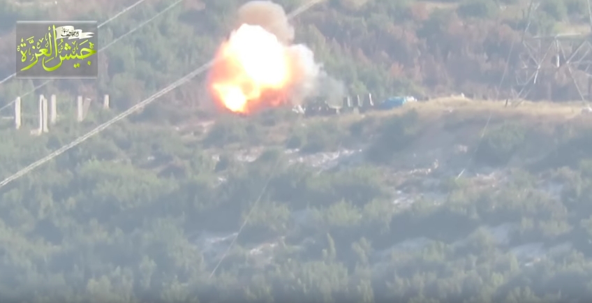 اللاذقية : لحظة نسف الثوار دبابة لميليشيات النظام على محور ” شير قبوع ” بصاروخ تاو ( فيديو )