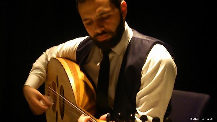 كان حمزة يروي قصة هروبه من الحرب في وطنه سوريا وقد بدت عليه مظاهر الحزن إلا أن الابتسامة لم تفارق محياه. وبينما نحن نتجاذب أطراف الحديث وإذ بحمزة يأخذنا بلطف إلى ثلة من الشباب السوريين من بينهم رجل كهل قصير القامة قوي البنية وقد غزا الشيب شعره. فقال لنا حمزة :”هذا خالي عبد القادر عازف العود الشهير في سوريا عموما وحلب خصوصا.”ثم لوح بيده اليمنى نحو شاب أنيق يحمل نظارة و قال:” أما هذا فهو خالي الأصغر، إنه محمد أصيل الذي يضرب على الإيقاع وينظم عزفنا الموسيقي بلمساته السحرية على الإيقاع”.
