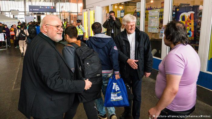 الصورة : زعميا الكنيستين الكاثوليكية والبروتستانتية وهما يستقبلان اللاجئين – أرشيف DW