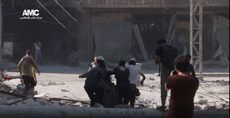 عشرات الشهداء و الجرحى .. طائرات بشار الأسد و بوتين ترتكب مجازر مروعة في حلب ( صور مؤذية )