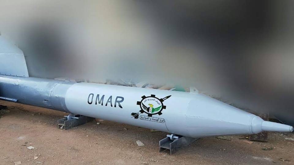 وأكد ناشطون أن مصدر الصواريخ هو “فرقة الهندسة والصواريخ” التابعة للجيش الحر، وهي صواريخ محلية الصنع أطلق عليه اسم “عمر 1”.