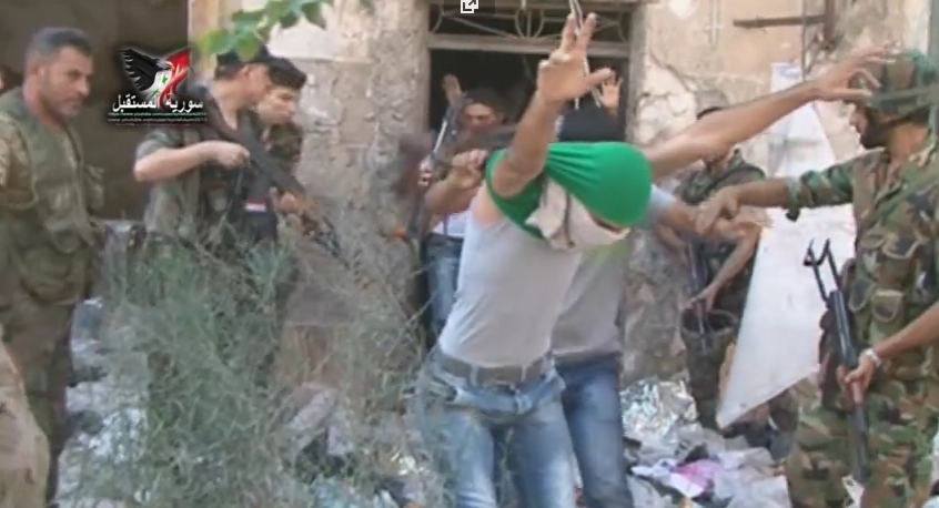 جانب من المشاهد الكوميدية التي عرضها إعلام بشار الأسد عن ” المسلحين ” الذين سلموا أنفسهم عبر المعابر المزعومة في حلب ( فيديو )
