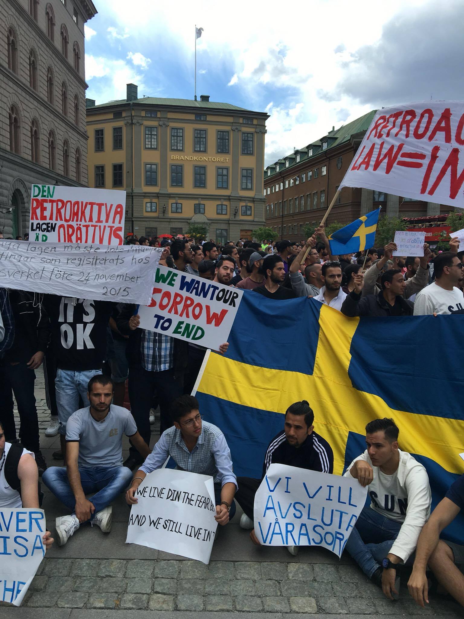 السويد : إعتصام للاجئين سوريين أمام مجلس النواب في ستوكهولم بسبب قانون ” الإقامة المؤقتة ” ( صور )