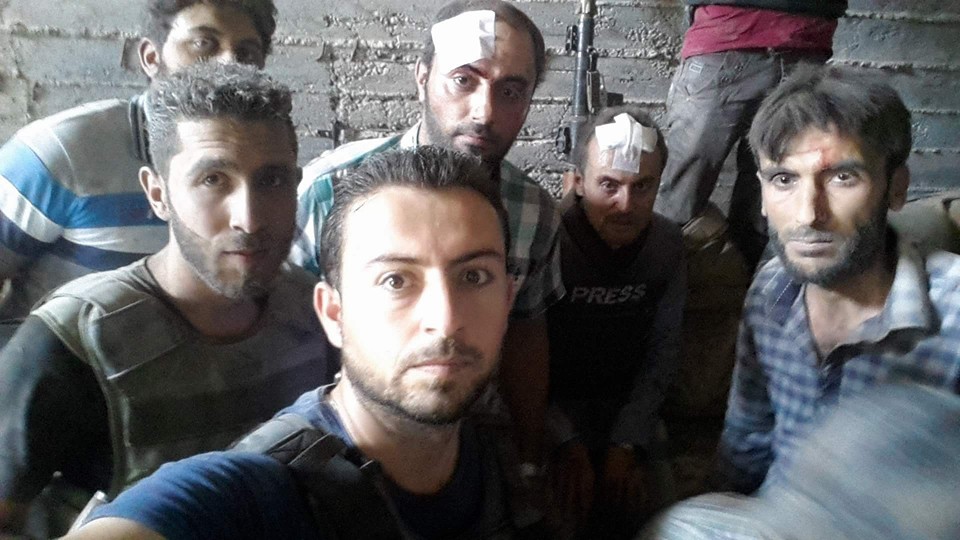 حلب : نجاة الناشطين الإعلاميين ماجد عبد النور ومحمد الفيصل ومعاذ الشامي وميلاد فضل ومحمد خير بك، ومصورون معهم من قصف روسي كاد أن يودي بحياتهم خلال تغطيتهم لمعارك المدينة مساء أمس ( صورة )