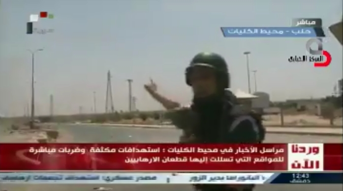 حلب : تقرير لمراسل تلفزيون بشار الأسد ” شادي حلوة ” عن المعارك في ” المدفعية ” و قطع طريق الراموسة ( فيديو )