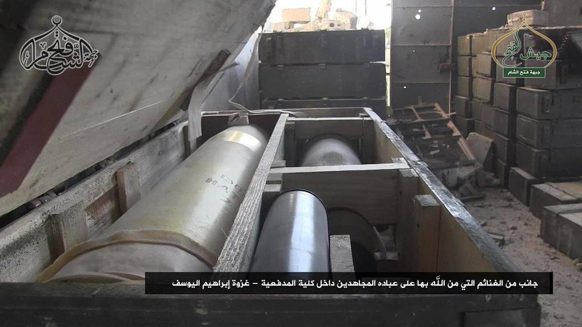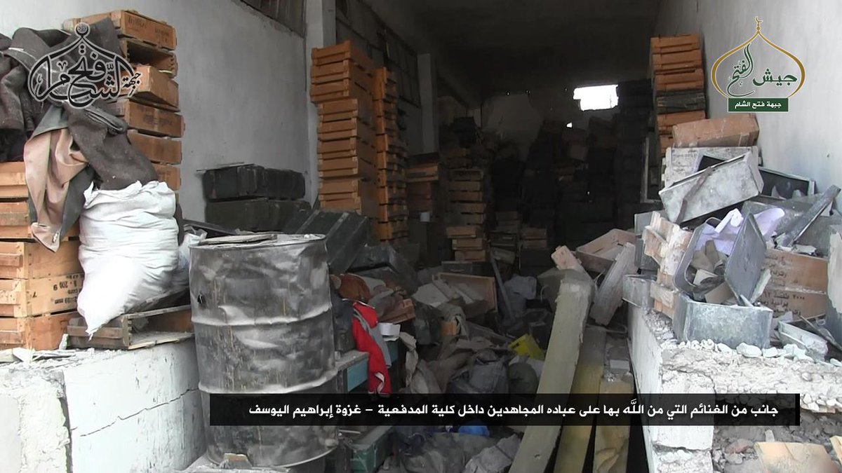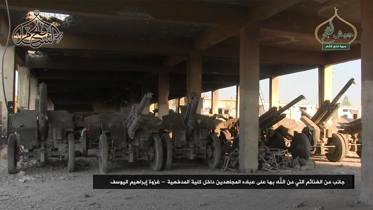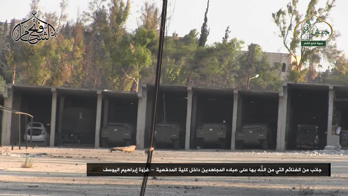 حلب : جانب من الأسلحة و الذخائر و الآليات التي تم الاستحواذ عليها بعد السيطرة على كلية المدفعية ( صور )