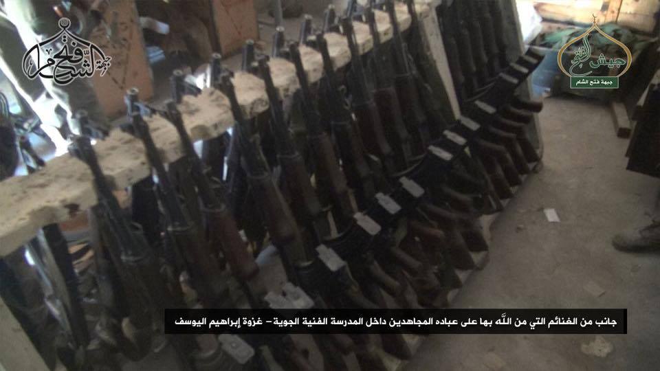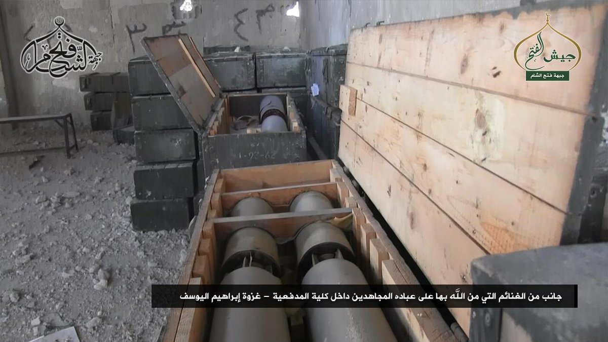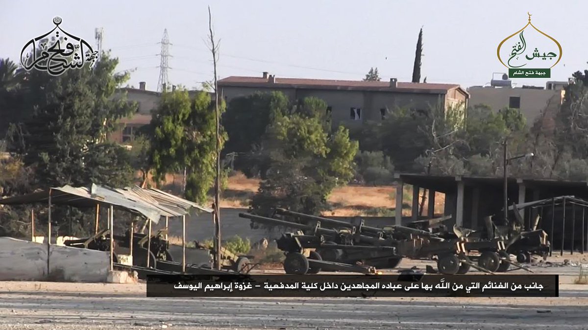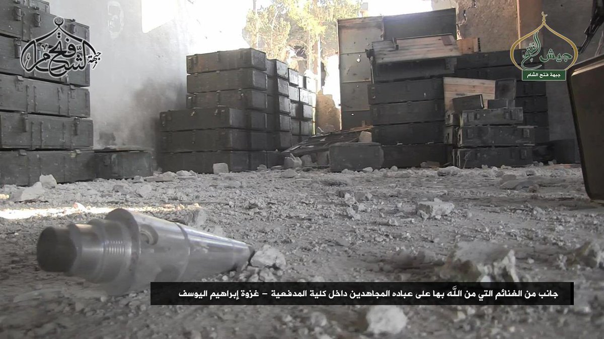 حلب : جانب من الأسلحة و الذخائر و الآليات التي تم الاستحواذ عليها بعد السيطرة على كلية المدفعية ( صور )