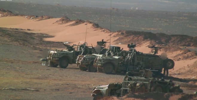 كما يظهر التقرير القوات البريطانية الخاصة، وهي ترابط في مناطق مرتفعة، بينما تقوم العربات المدرعة بدوريات حول المنطقة التي تتواجد فيها قاعدة لجيش سوريا الجديد بالقرب من الحدود السورية العراقية.