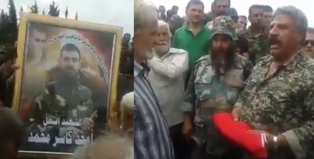 تشارك على تقديمها كل من بشار و سهيل الحسن و رامي مخلوف .. مراسم منح ” هدية ” لوالد أحد قتلى الميليشيات النظامية في مصياف ( فيديو )