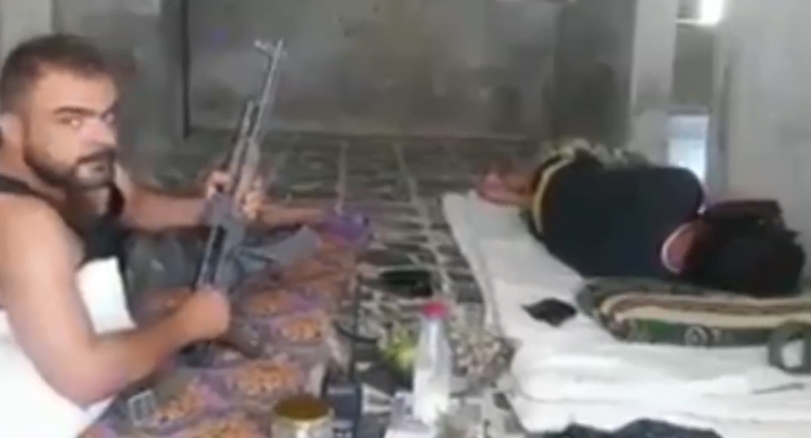 فيديو : مزحة ” ثقيلة ” لأحد عناصر ميليشيات بشار الأسد مع زميل له !