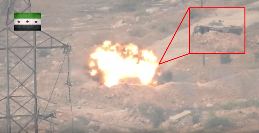 حلب : لحظة نسف الجيش الحر عربة مدرعة لميليشيات بشار الأسد على مدخل ” الكلية الفنية ” بصاروخ تاو ( فيديو )