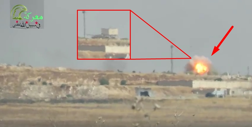 لحظة نسف الجيش الحر دبابة لميليشيات بشار الأسد بصاروخ ” تاو ” على حاجز الزلاقيات في ريف حماة الشمالي ( فيديو )