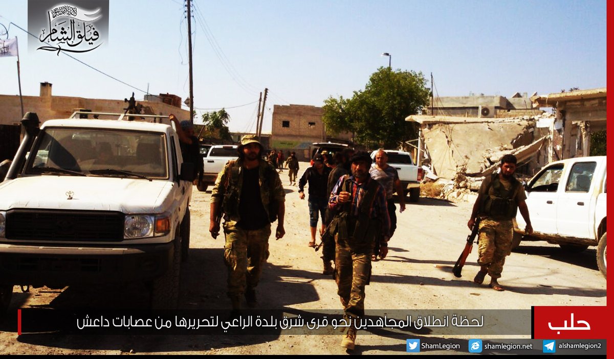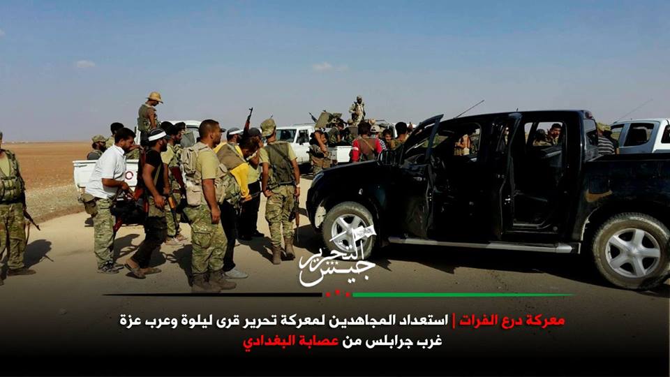 واليوم السبت، تمكن الجيش الحر من تحرير قرى مزارع كنو وليلوة والفرسان وعرب عزة ورأس الجوز، غرب جرابلس، إلى جانب قرية الأثرية شرق الراعي مع انطلاق المعركة في الطرف المقابل.