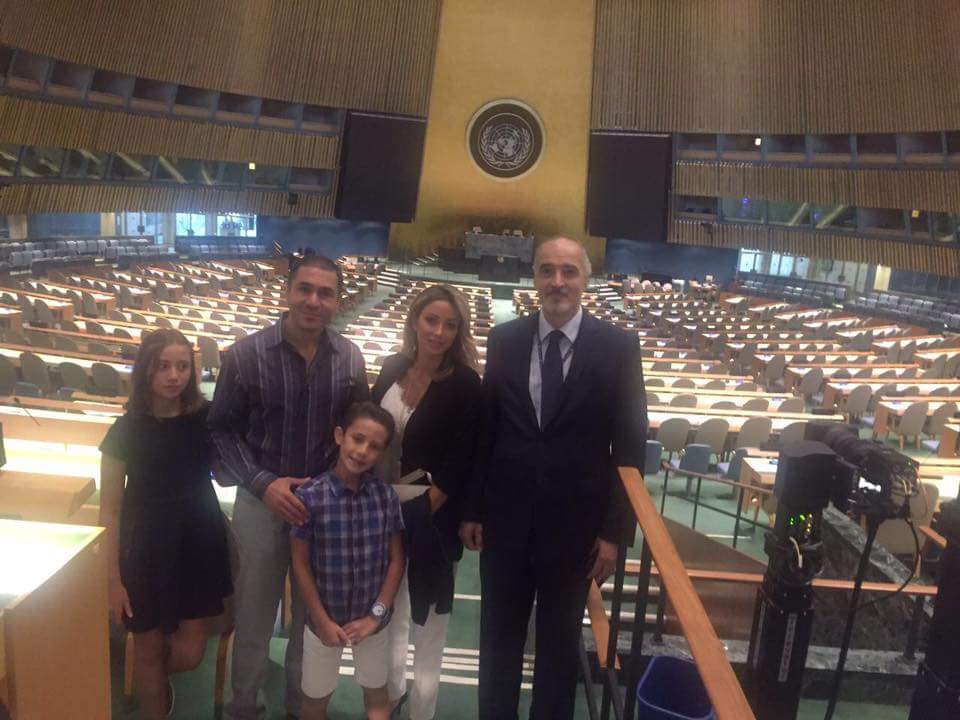 عائلة ” الأمريكي ” فارس شهابي تتجول في مقر الأمم المتحدة مع بشار الجعفري ( صور )