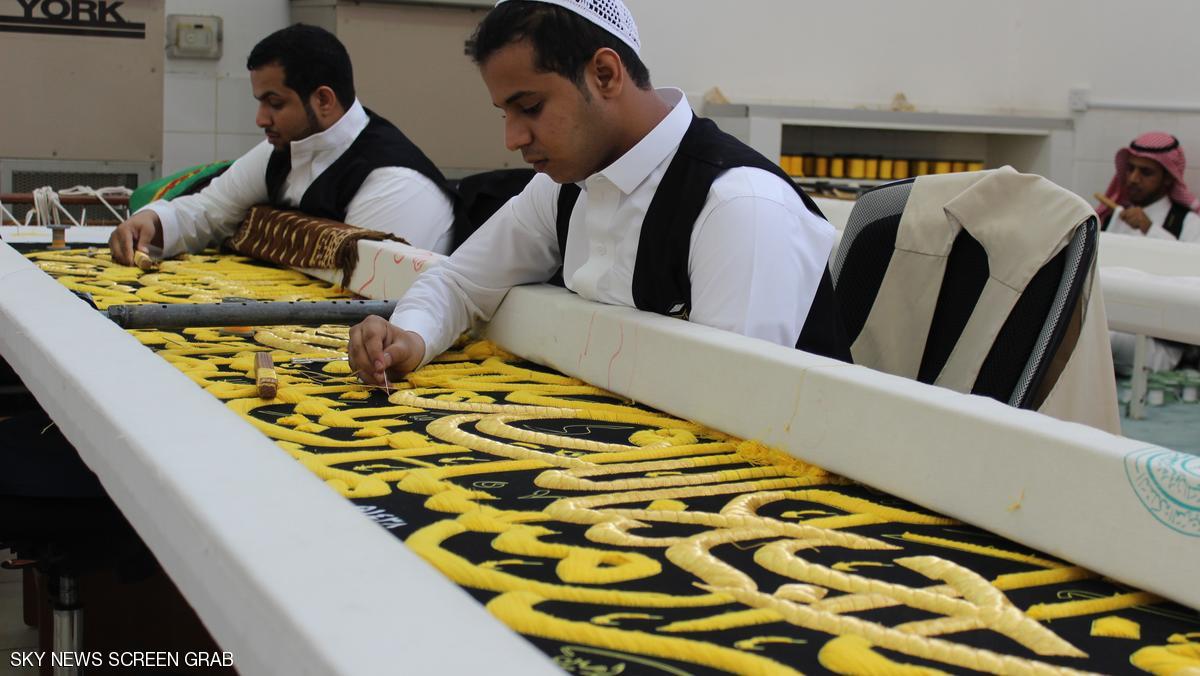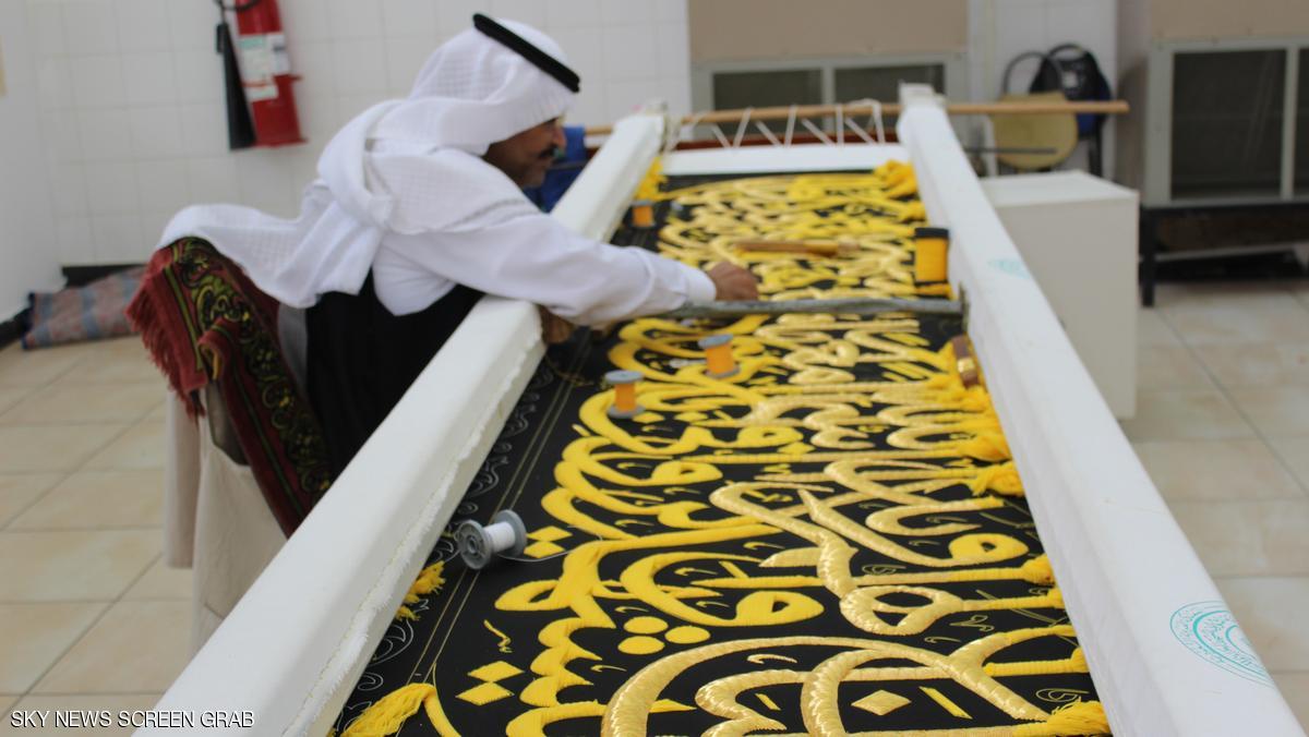 منذ قرابة 32 عامًا وفهد العويضي يخيط بيديه الآيات القرآنية التي تزين ستار الكعبة بخيوط من ذهب، رفقة 78 حرفيًا بقسم الحزام بمصنع كسوة الكعبة المشرفة في مكة المكرمة.