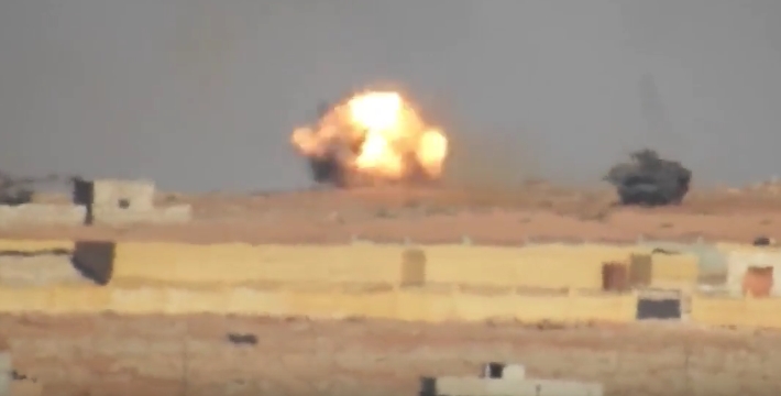 وكالة أعماق التابعة لتنظيم ” داعش ” تنشر مقطعاً مصوراً يظهر ما قالت إنه ” تدمير دبابتين للجيش التركي جنوب بلدة الراعي بريف حلب ( فيديو )