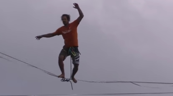 مغامرون أوروبيون يتنافسون في مشى على حبل مشدود بين جبال الألب ! ( فيديو )