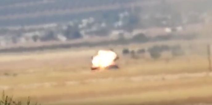 تنظيم ” داعش ” ينشر مقطعاً مصوراً يظهر ما قال إنه تدمير دبابة للجيش التركي قرب قرية جكة في ريف حلب الشمالي ( فيديو )