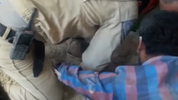 حلب : أب ينجح بمساعدة الدفاع المدني بإخراج طفلته الرضيعة حية من تحت الأنقاض بعد غارات لطائرات بشار الأسد ( فيديو )