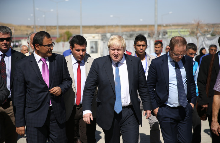 وصحب جونسون في زيارته السفير البريطاني في تركيا، ريتشارد مور، والمبعوث البريطاني الخاص إلى سوريا، غاريث بايلي، حيث أطلعه مسؤولون في السفارة البريطانية بمعلومات عن برنامج التدريب.