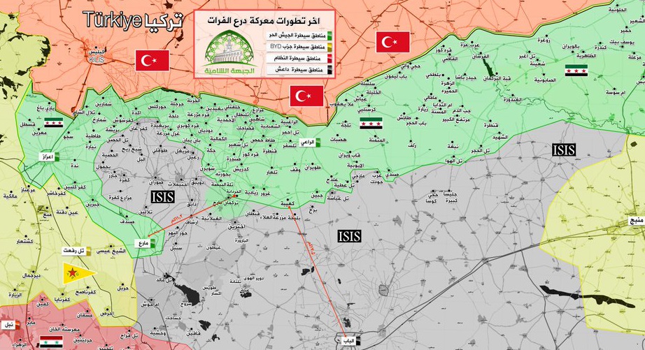 درع الفرات : الجيش الحر يسيطر على ” تركمان بارح ” بعد معارك مع تنظيم ” داعش ” و يواصل تقدمه صوب ” دابق ” ( فيديو )