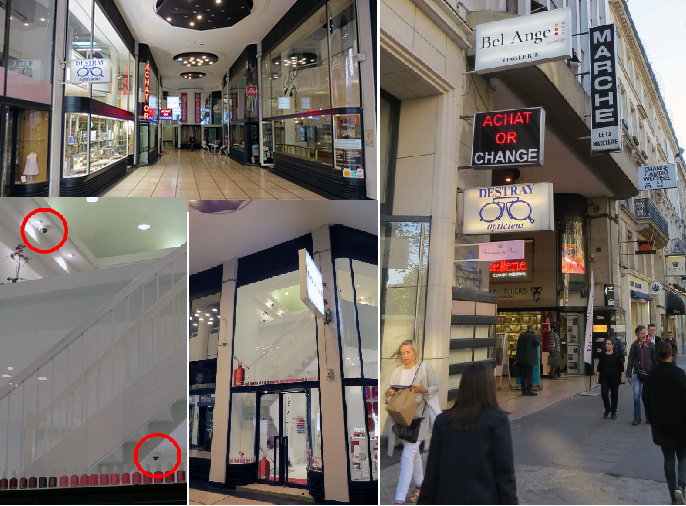 وأقبلوا على دراجات هوائية في الثالثة فجراً إلى سكن Pourtalès المحتل مبناه الرقم 7 بشارع Tronchet في الدائرة الباريسية الثامنة، وهو من 9 شقق فندقية، إحداها بطابقه الأعلى كانت لكيم كارداشيان، وعلى بعد أمتار منها يقع مركز تجاري، بداخله صالون اسمه Bel Ange لتقليم وتجميل الأظافر، واطلعت “العربية.نت” على موقعه، عبر Google Earth الكاشف مجاورة المركز التجاري للنزل الفندقي بسهولة، وهو ما نراه بصور للشارع حيث المركز وممره الداخلي، وفيه صالون التقليم وكاميراته.