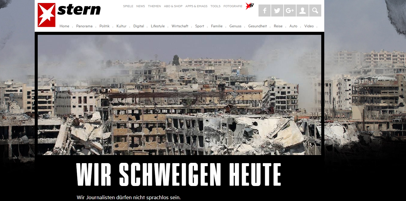 احتجب اليوم الموقع الالماني الشهير لمجلة “شتيرن” تضامناً مع ما يجري من حلب.
