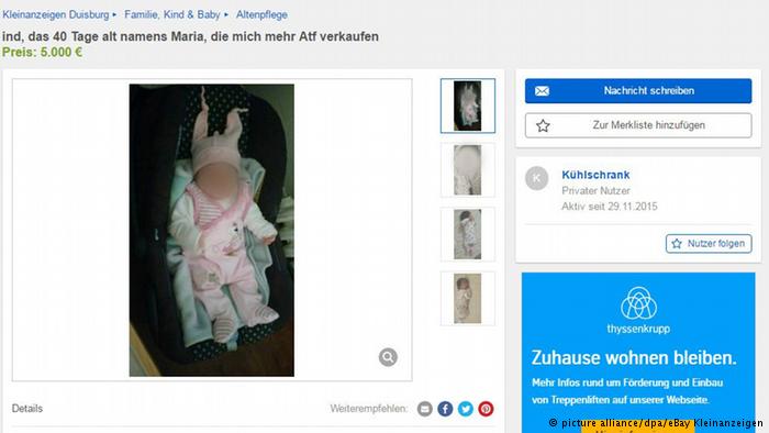 وغالبا ما يُعرض أطفال للبيع في مواقع الإنترنت، وذلك فقط لغرض المزاح، أما هذه القضية فلا تعتقد الشرطة الألمانية بأنها مزحة. (DPA-DW)