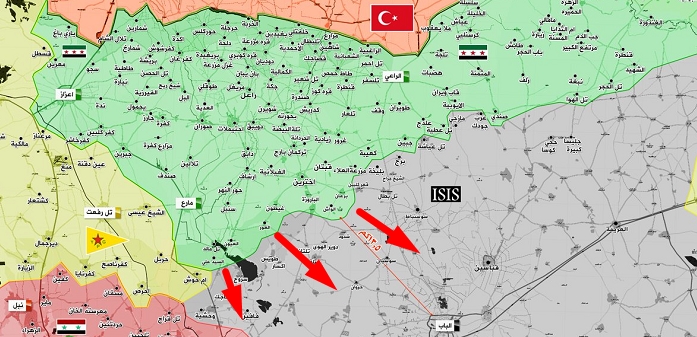 وكانت تركيا أعلنت أن هدف فصائل المعارضة المعتدلة من قبلها حالياً هو السيطرة على مدينة الباب، فيما قال الرئيس التركي رجب طيب أردوغان، اليوم الثلاثاء، إن إخراج الوحدات الكردية من منبج سيتم بعد السيطرة على مدينة الباب.