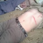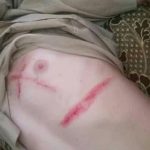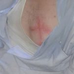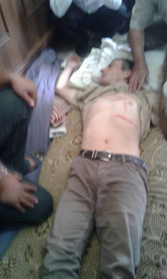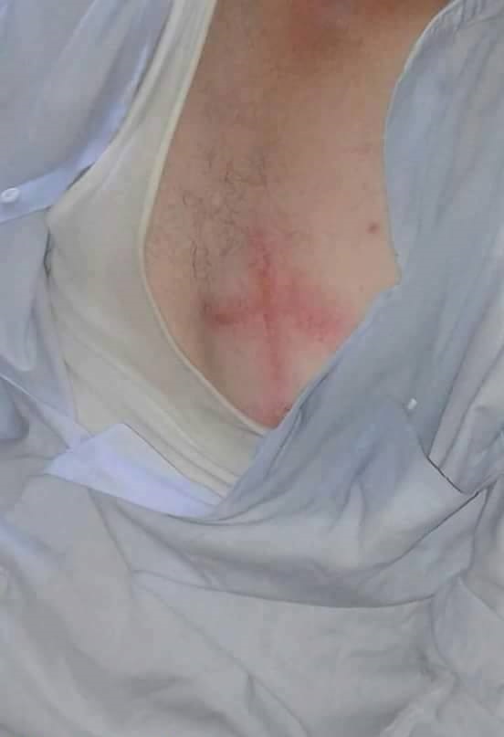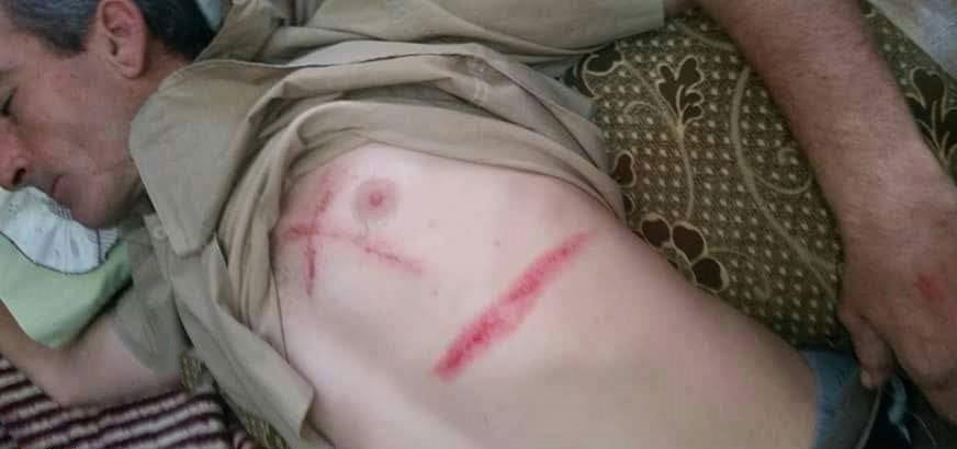 المرسوم على صدرو مو بس صليب …وإنما خط بالعرض وكمان في جرح على أيدو