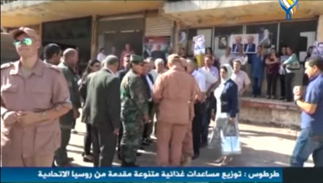 قوات الاحتلال الروسي توزع " مساعدات غذائية " في طرطوس ( فيديو )