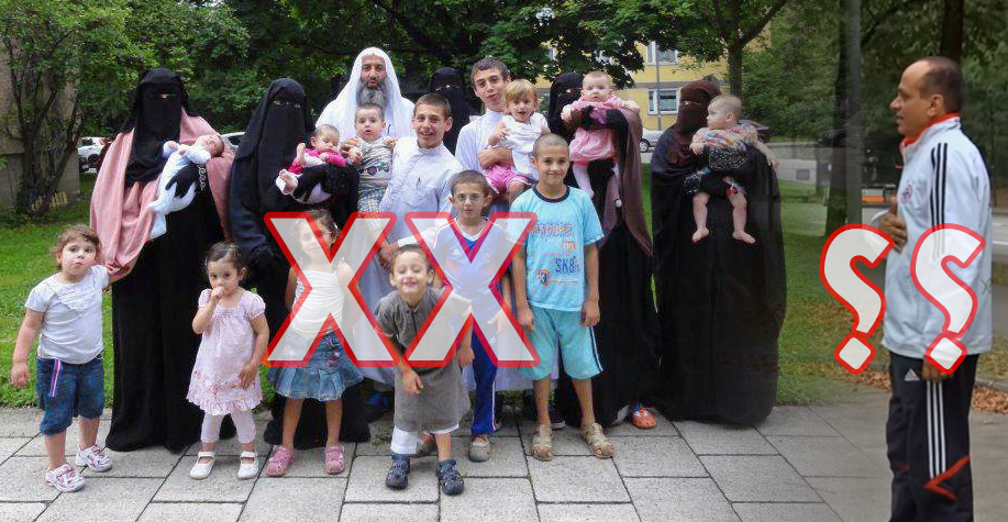 وتناقلت وسائل إعلام ألمانية وأخرى عربية صورة تظهر رجلاً بزي إسلامي و5 نساء منقبات وعدد من الأطفال، على أنهم اللاجئ السوري وعائلته، إلا أن بحثاً سريعاً عن الصورة، يظهر أنه تم نشرها على الشبكة قبل سنوات للتعبير عن عدة قضايا متعلقة بتعدد الزوجات في الإسلام، ولا علاقة لها باللاجئ السوري، ولم يتسن لعكس السير الوصول للمصدر الأول للصورة، لقدمها وتعدد نتائج البحث.