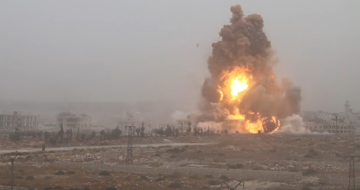 حلب : لحظة انفجار سيارتين مفخختين بنقاط تمركز ميليشيات النظام في ضاحية الأسد ( فيديو )