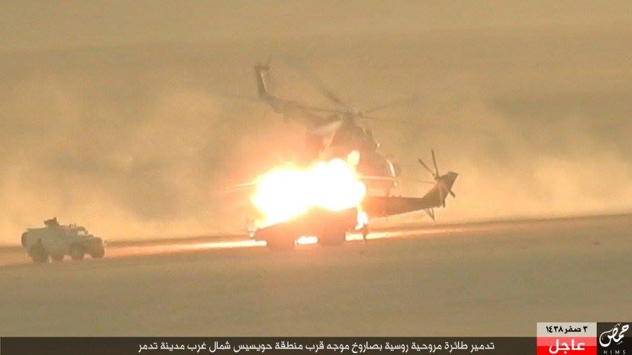 أعلن تنظيم “داعش” عن تدمير مروحية هجومية روسية في ريف حمص.