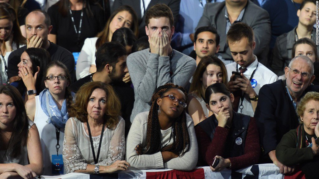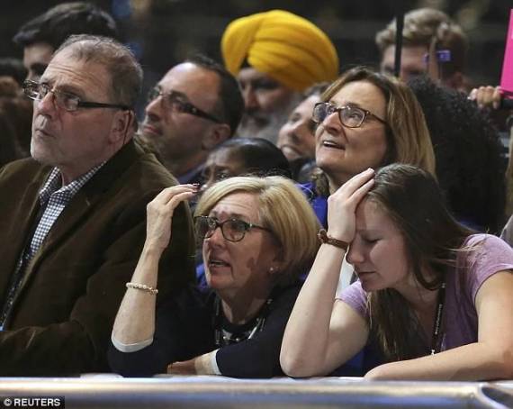 أنصار كلينتون يدخلون في نوبة بكاء مع فوز ترامب بالرئاسة الأميركية (صور)