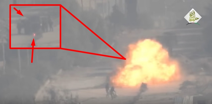 حلب : لحظة نسف الجيش الحر تجمعاً لميليشيات إيران و حزب الله في ضاحية الأسد بصاروخ ” تاو ” ( فيديو )