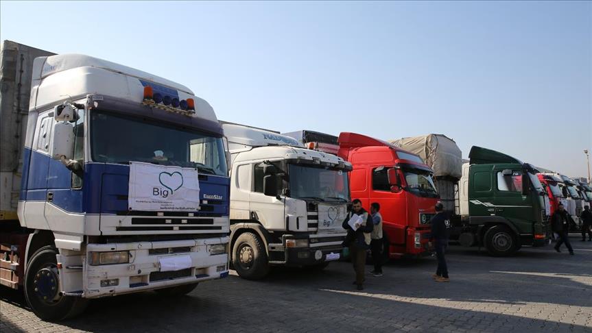 24 شاحنة مساعدات إنسانية أممية تنطلق من تركيا إلى إدلب
