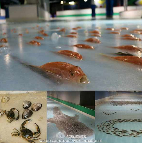 وتم تجميد #الأسماك النافقة في الأرض لتكون تحت أقدام المتزلجين في حلبة “Freezing Port” في منتزه “سبايس وولد” الواقع في مدينة كيتاكيوشو.
