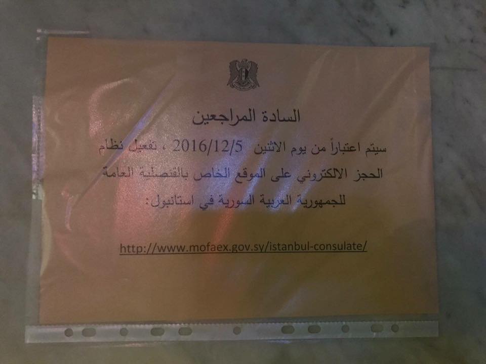 أعلنت قنصلية بشار الأسد في إسطنبول عت عودة العمل بنظام الحجز الإلكتروني.