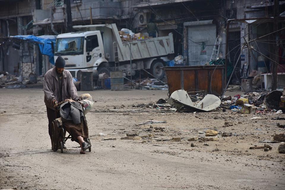 بينما يحاول زوجها تدفئتها و البحث لها عن مستشفى للعلاج .. مسنة حلبية تفارق الحياة ( فيديو )