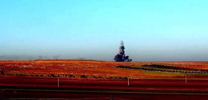 حلب : تنظيم ” داعش ” ينشر مقطعاً مصوراً يظهر استهداف الجيش الحر و الجيش التركي بسيارات مفخخة بالقرب  من مدينة الباب ( فيديو )