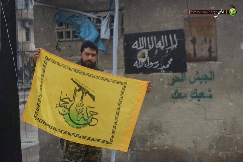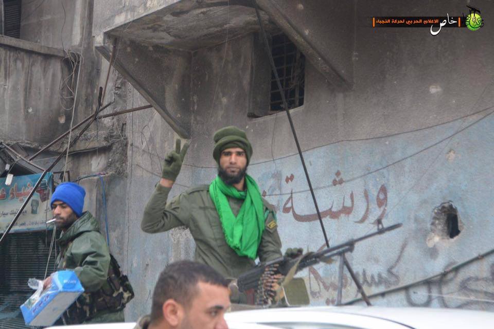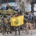 عناصر من ” الجيش العربي السوري ” يرفعون أعلامهم في أحد أحياء حلب بعد السيطرة عليه ( صور )